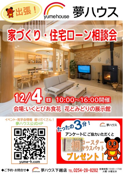 | 参加費用: | 無料 | 会場名: | 夢ハウスショールーム |