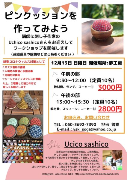 | 開催時間: | <午前の部>9:30〜12:00 <午後の部>13:00〜15:30 | 定員: | <午前の部>10名(予約制)<午後の部>10名(予約制) |
