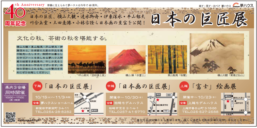 | 参加費用: | 500円 | 会場名: | 夢ハウスショールーム、工場、各展示場 |