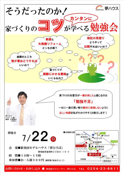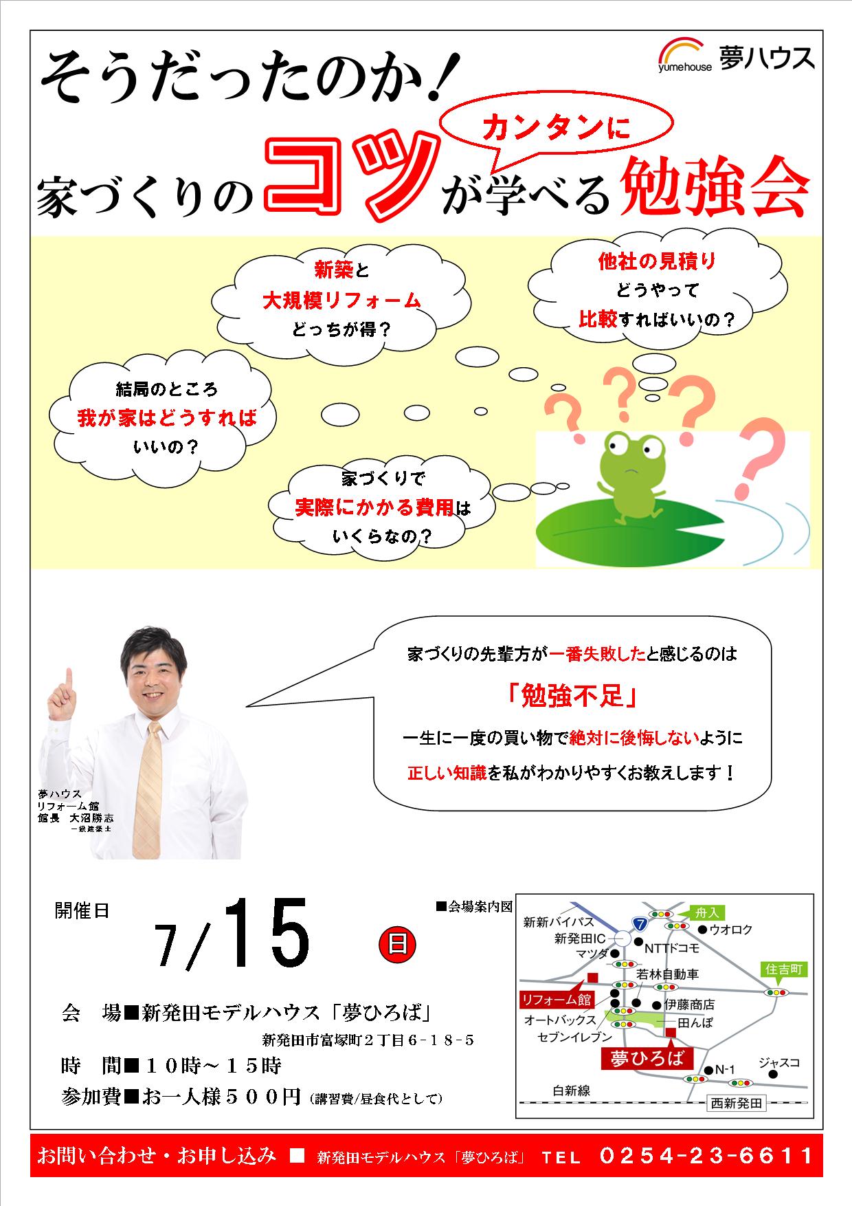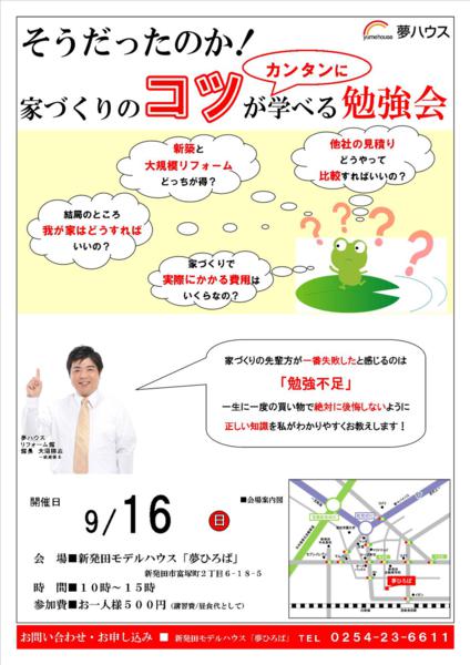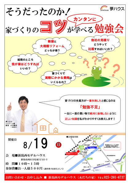 | 参加費用: | お一人様500円 | 会場名: | 新発田モデルハウス「夢ひろば」 |